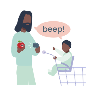 For example, at the bus stop, you might hear a car go "vroom vroom". In the supermarket, you might hear the till go "beep beep". At the park, it could be the birds singing "cheep cheep". Make the sounds and see if your child joins in with you.