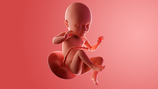 The bones are hardening up, apart from the skull bones, which will stay soft and separated until the baby's around 12 to 18 months old. Having this slight flexibility with the head makes the journey down the birth canal a bit easier.