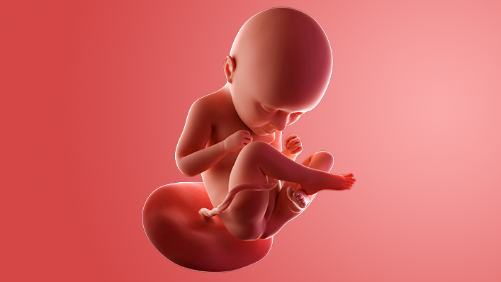Your baby, or foetus, is around 43.7cm long from head to heel. That's approximately the size of a pineapple.
