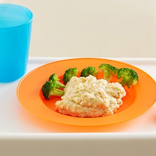 Blend or mash the cooked hot pot until it is smooth with soft lumps. Serve ¼ of the hotpot with the cooked broccoli as a finger food.