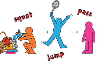 The player nearest the ice must squat down to pick up a piece, then jump up and pass it to the next person in the line. The next person must do a star jump before passing the ice on.