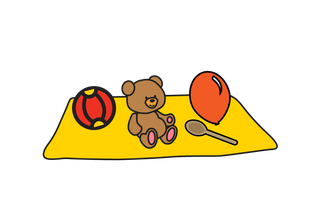 Grab a towel and 5 toys per player. Share the toys between the players.