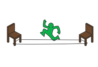 If you touch the rope, start again. If you make it, move the rope up a little higher and repeat.