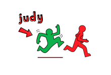 Judy gets up and chases after the caller who runs around the circle to take Judy's seat without getting caught.