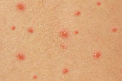 White skin with stage 1 chickenpox spots.