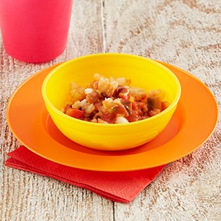 Mixed beans and vegetables cooked with a little bit of spice, served with jacket potato, is a simple yet interesting dinner for your baby. You could even make it for the whole family to enjoy together.