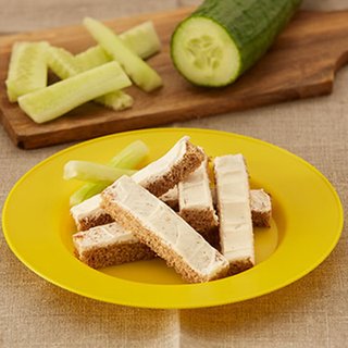 Tasty cream cheese toast fingers, served with cucumber slices – a great finger food combo.