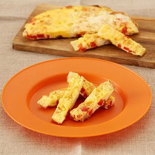 A tasty vegetable omelette. It’s quick for you to make, easy for baby to hold and eat, and great for adding some extra vegetables.