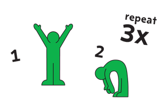 Get warmed up by raising your arms and stretching up to the sky for a count of 10, then touch your toes for a count of 10. Repeat 3 times.