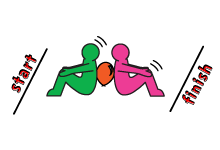 Sit back to back on the start line and carefully place the balloon between your backs. Use a wall if you're by yourself.
