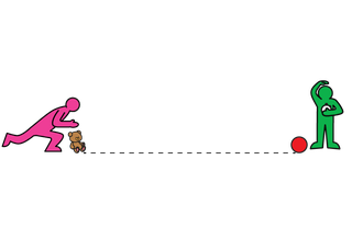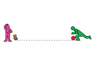 Use 2 toys to set up a start and finish line. You will need a watch or timer.