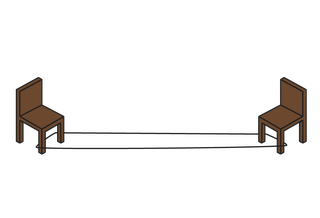 First you need to create the reins – make sure you have plenty of space. Get a skipping rope or a long piece of string and loop it around the legs of 2 chairs to form a square. If you don't have any chairs handy, ask 2 friends to loop it around their legs.